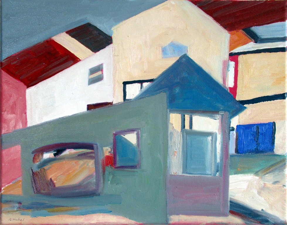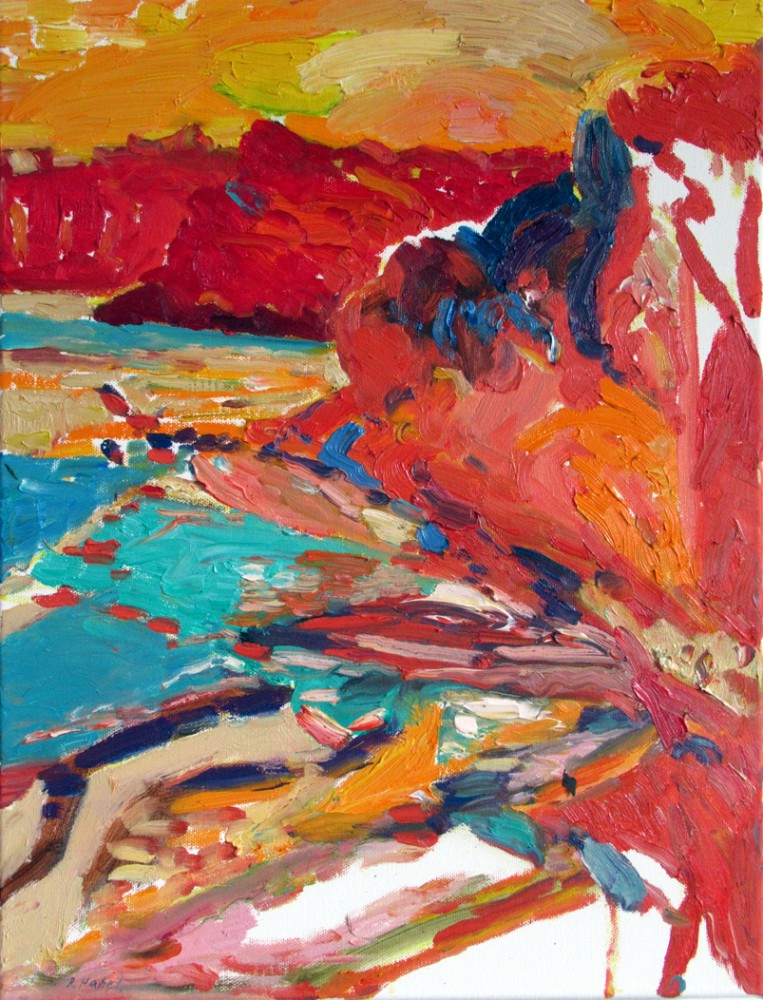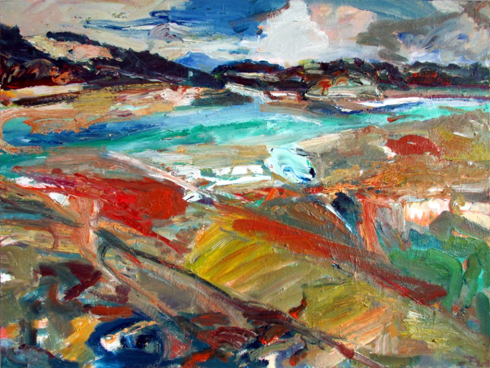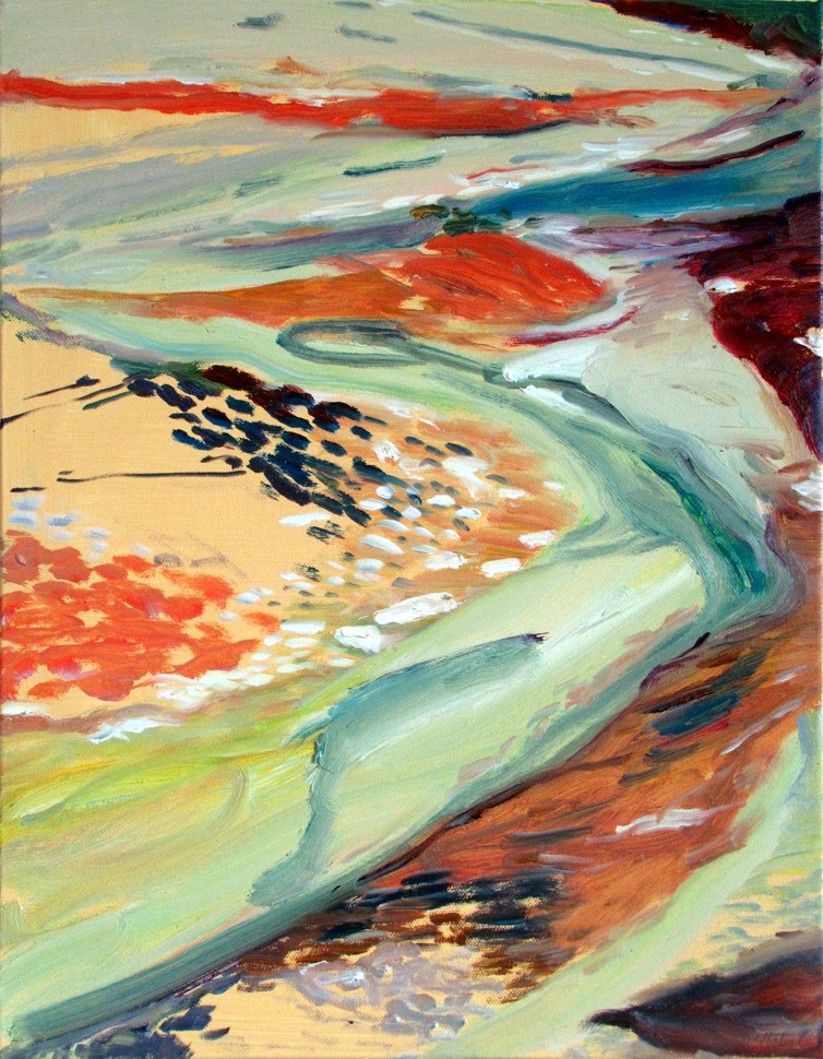 Three Tasmanian Valleys painted at the Lochiel salt plains, South Australia on a hot windy day 2009